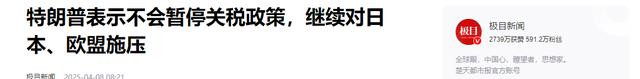 极目新闻《特朗普表示不会暂停关税政策,继续对日本、欧盟施压》